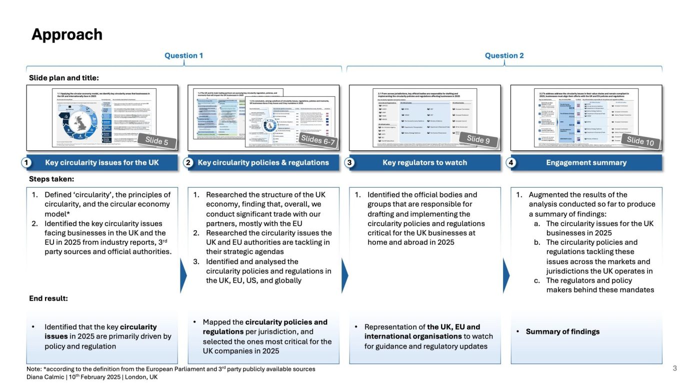 (Exhibit 3 – Circularity regulations and policies in the UK, EU, US, and internationally)